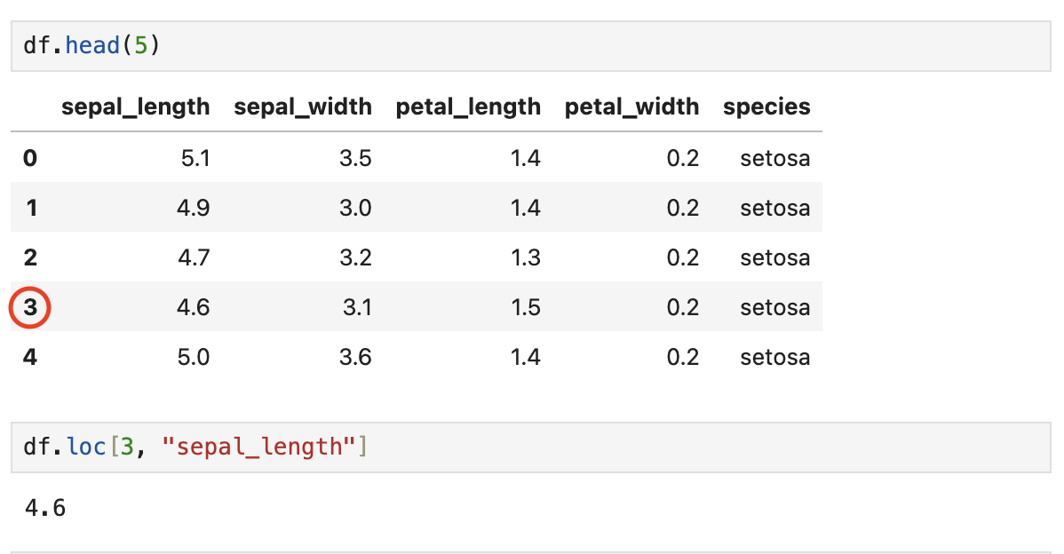 .loc 는 python index가 0부터 시작하는 성질을 따르지 않고 index 번호 그대로 가져옴.
