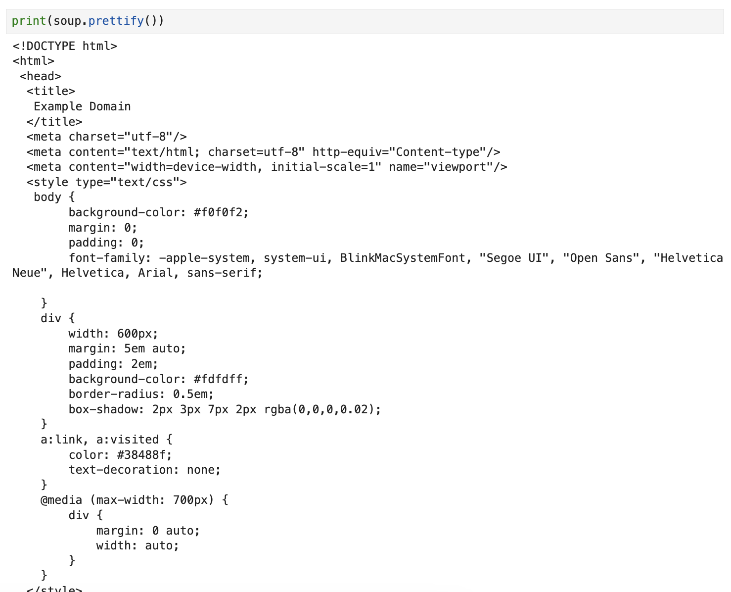 만든 객체가 담긴 soup의 .prettify()를 활용해 보기 좋게 변환해줍니다.