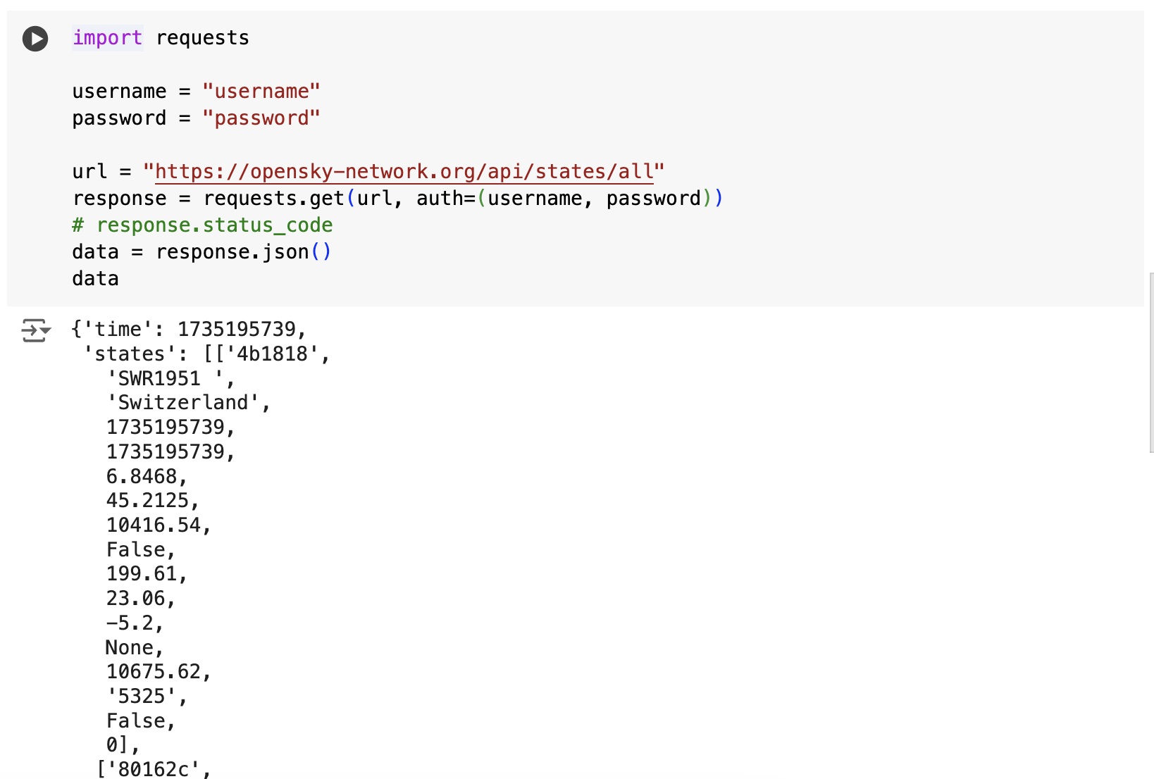 python requests 라이브러리를 사용해서 OpenSky REST API를 호출해보았습니다.