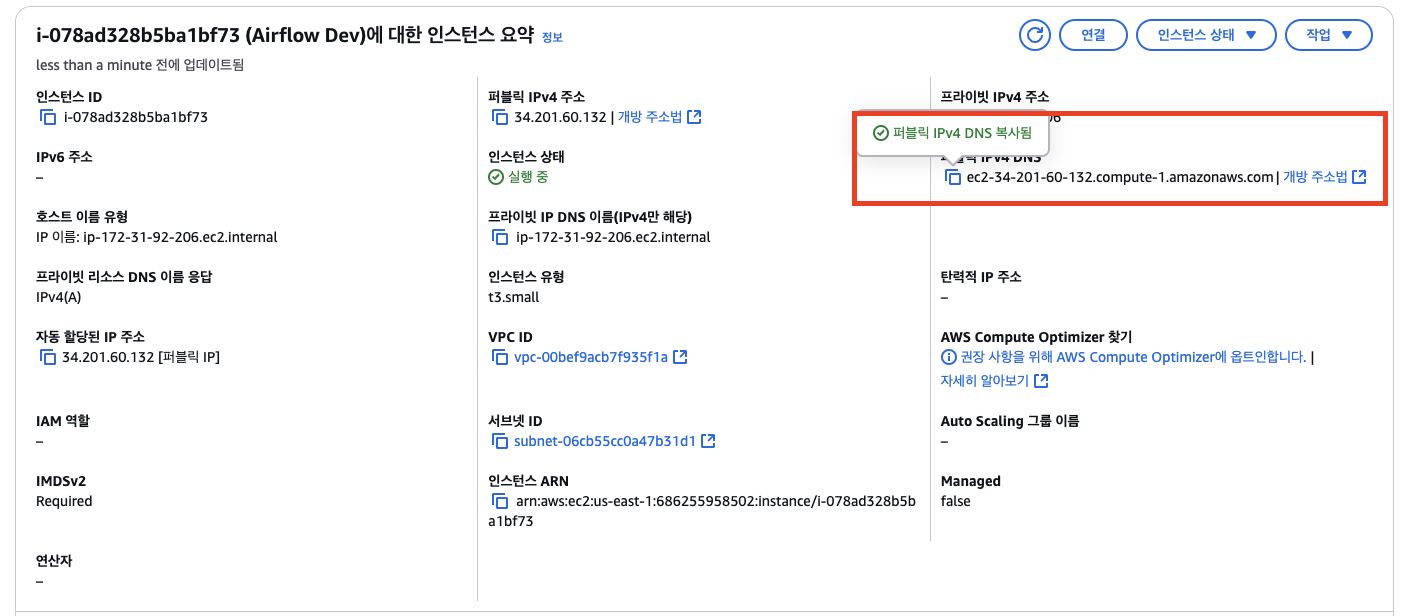 퍼블릭 IPv4 DNS 복사(호스트)