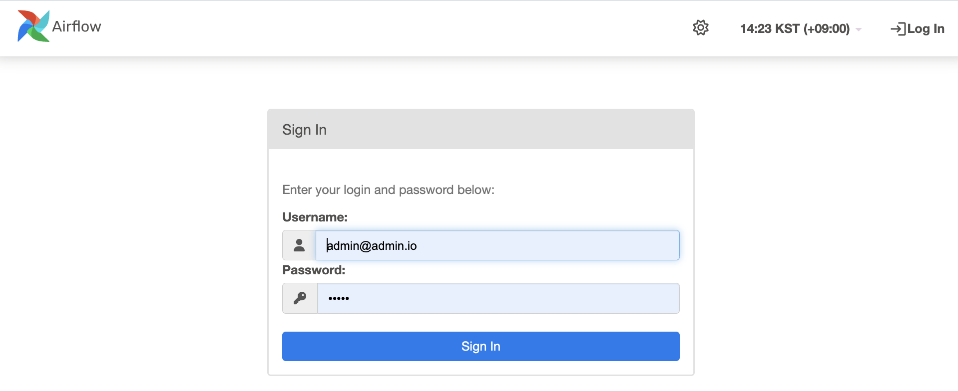 초기 계정 아이디: airflow, password: airflow로 로그인 가능할 수 있습니다.